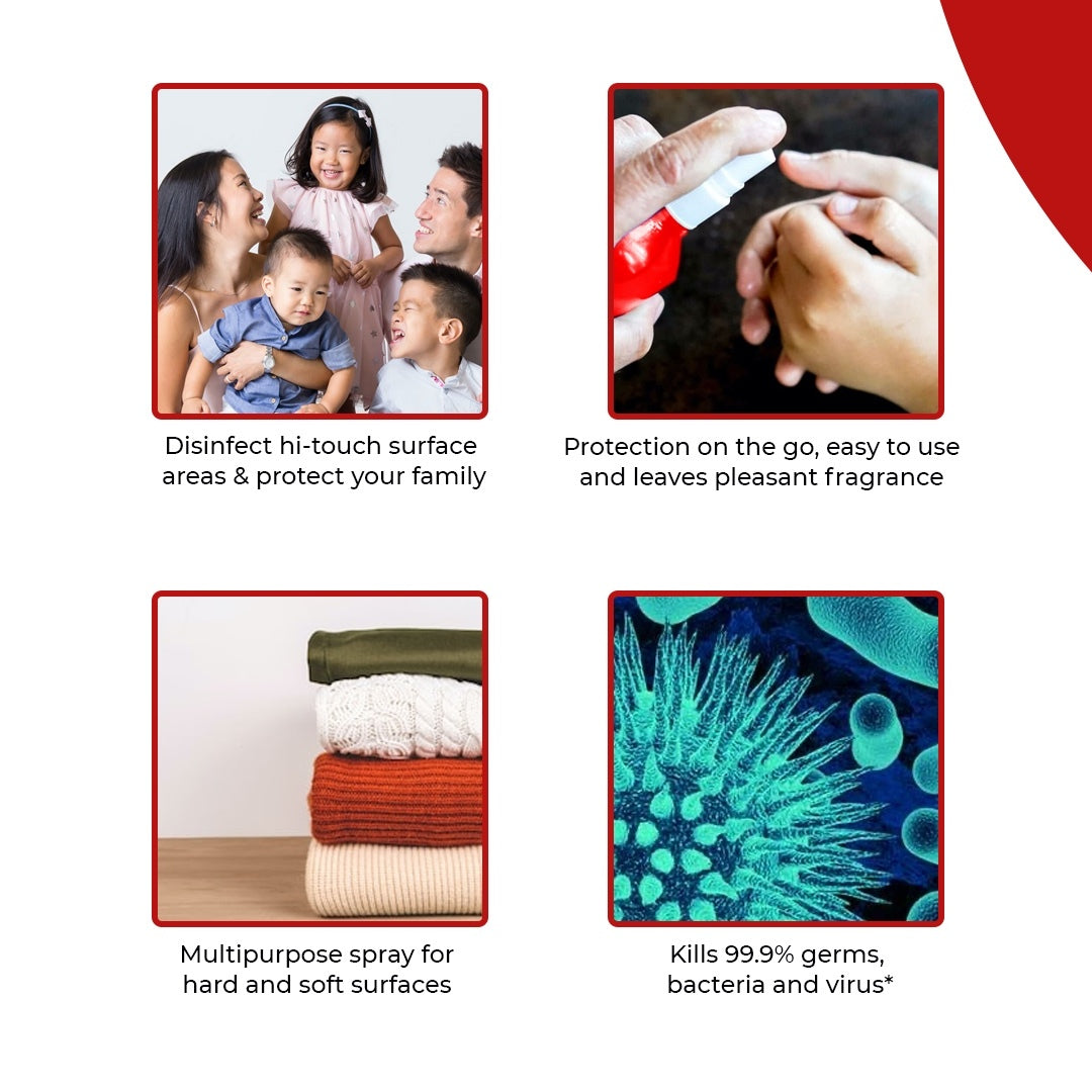 Spray it on surfaces, door knobs, courier packages, couch, equipments, toilet area, dustbin, kitchen sink, shower bases, taps, curtains, carpets, car seat sand more to stay germ free in the home and offices with mild & refreshing lime fragrance.